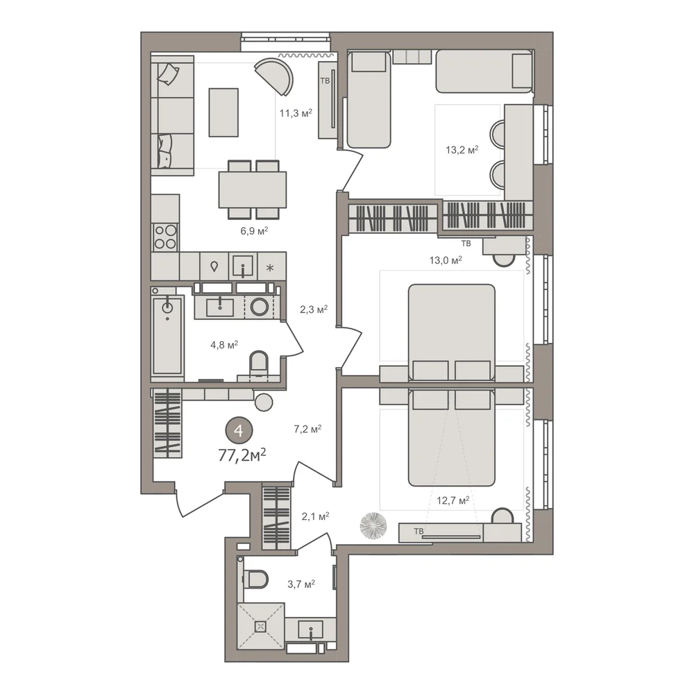 4-комнатная 85.7 м